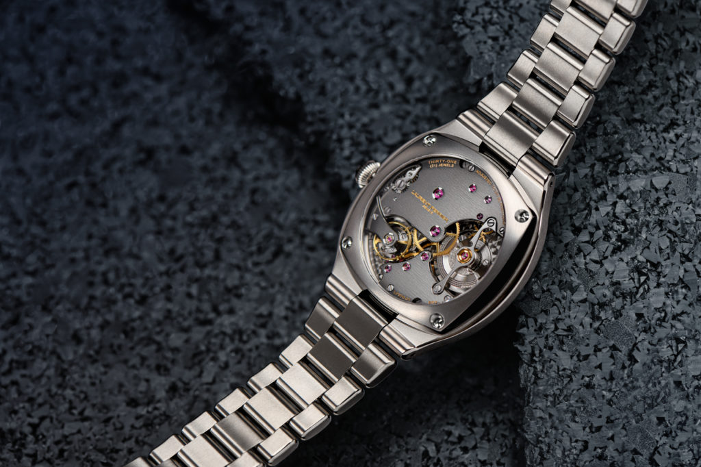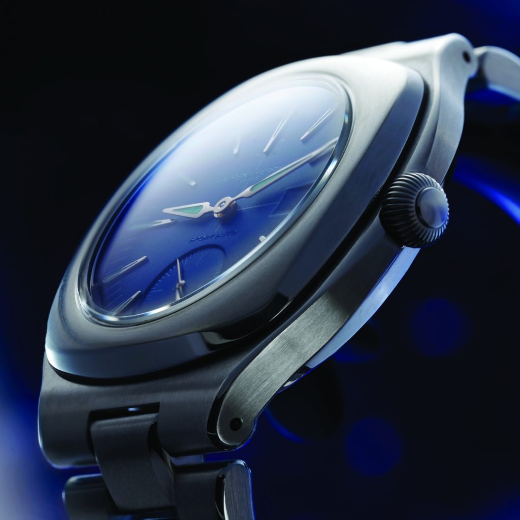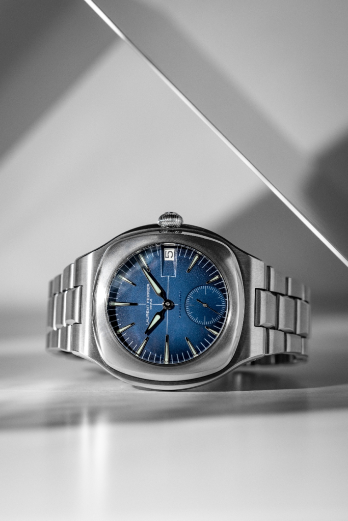 Skip ahead to the 2020s and the culmination of that endeavour can be found in the form of the 41.5mm Sport Auto. The collection was named in tribute to the origins of the marque Laurent Ferrier, and designed with motor racing and automobiles as inspiration for its evocative silhouette, sleek exterior, and rounded aerodynamic curves from all perspectives – a subtle reference to Laurent Ferrier’s 2019 introduction of the Grand Sport collection of 44mm tourbillon-fitted models. The Sport Auto features a fully integrated three-link bracelet and 12.7mm-thick case, both in grade 5 titanium; a tonneau-shaped middle case; a bezel whose shape brings to mind Laurent Ferrier’s Square collection; and a domed sapphire crystal that continues the curved profile.