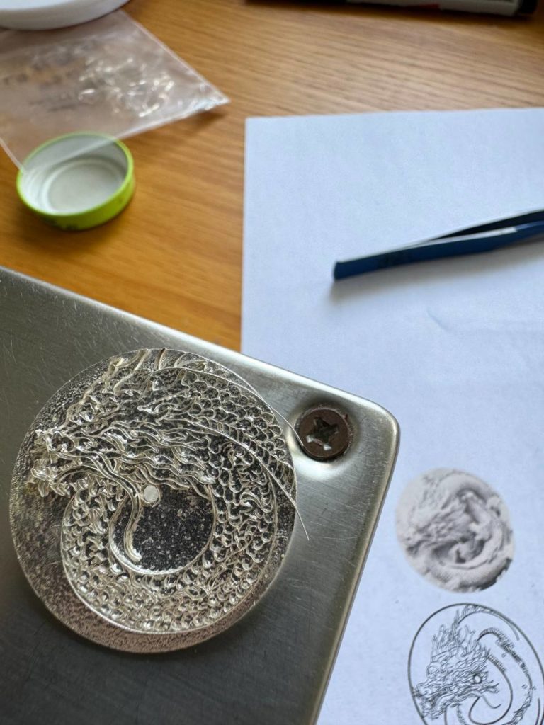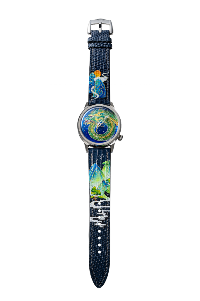 The inaugural piece of Feynman Timekeepers’ Coalesce Zodiac series from 2024, inspired by the Year of the Dragon on the Chinese lunar calendar, the Coalesce – Dragon was the culmination of the skills of a number of artisans from Singapore and their craft: the cloisonné enamel dial by enamellist Charlotte Hoe of Royal Insignia; the handmade leather strap by Ng Shu Yi of YI Leather and the bespoke display box by Gene Khoo of Ten10 Horowerkz, with both items painted by Aries Liew of Hui Art; and a watch assembled and perfected by watchmaker Alvin Sim. “We are [making metiers d’art watches] because we really want to showcase what we can do, aside from our normal production,” Lim added. “We want to promote what we can do in Singapore itself, because many of [these artisans] are actually quite good at what they’re doing.”