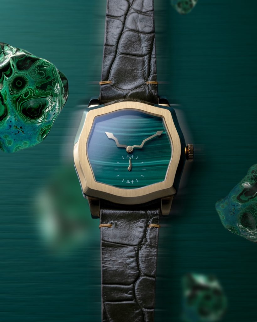Feynman Timekeepers has been on a roll lately. Its most recent collection, the Feynman Q, has been well received since it was launched in July – back orders will take until next February to fulfill, Lim elaborates – and represents a turning point of sorts for the brand. “I tried to move a little away from a mechanical watch point of view, and I’m trying to do quartz watches to see how the market will respond,” he adds. “So it was like a gamble for us.” Christened the Feynman Q for the quirky case, an homage to the Roger Dubuis Sympathie, and also for it being a quartz movement, the first for Feynman Timekeepers, the 34mm watch features an on-trend dial of ornamental hard stone (malachite, turquoise, tiger’s eye or lapis lazuli) together with the lizard-tail small-seconds hand, a Feynman Timekeepers signature, and crimped hour and minute hands that intersect once every hour to form a rhombus. The Feynman Q follows the brand’s August 2024 release, the Feynman VI. Also named with wordplay in mind, the Feynman VI references vintage TV cases, as well as the sixth year of Feynman Timekeepers. The 40.8mm by 38mm watch features a sloping rehaut, with the Feynman logo tucked away discreetly near 6 o’clock; a custom-designed skeleton handset; and a dial with (for the earlier iterations) a scratched pattern achieved through fine vertical brushing, and rendered in dark blue, silver, or green, with the last designated the Founder’s Edition, a Feynman Timekeepers tradition.