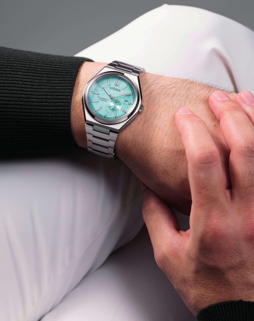 The Citizen Zenshin features a 40.5mm case and an integrated-style bracelet, both crafted from what Citizen likes to call Super Titanium. A proprietary Duratect treatment is, of course, applied to enhance surface scratch resistance, which is what the “Super” refers to. While the overall design leans towards the sporty, the refined details ensure it can be worn suitably in a professional setting. That said, it is just as fitting for leisure activities, with a water-resistance rating of up to 100 metres. The watch is powered by a self-winding movement with a 42-hour power reserve.